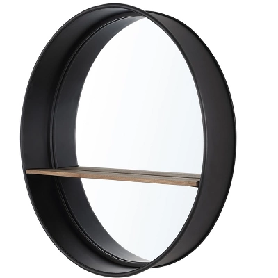 Fabulous form meets flawless function in this Bonni Mirror. Bonni’s deep frame boasts a clever shelf perfect for makeup, accessories, or seasonal décor, and a jet black finish ensures Bonni is a showstopper in any room, regardless of color scheme. Care Instructions: Dust with a soft, dry cloth. Do not use abrasive cleaner. To clean mirror, spray a small amount of glass cleaner onto a lint-free cloth and wipe mirror clean.