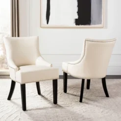 Warner Round Back Leather Side Chair (Set Of 2) – Butter Cream – Safavieh