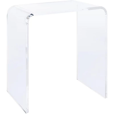 An elegant expression of upscale minimalism, this Pryor Side Table abounds with airy depth and dimension. Pryorรs crystal clear acrylic frame is ideal for visually opening a space in its understated yet eye-catching silhouette. Care Instructions: Dust regularly with a soft, dry cloth. Never use oiled or treated cloths on lacquered finishes. Some finishes can be wiped with a damp (not wet) cloth, followed at once by rubbing with a dry cloth to remove fingerprints and smudges. For persistent spots, gently clean with a soft cloth and a solution of water and mild soap, make sure to wipe dry. Use adhesive felt pads, coasters and placemats to protect your furniture.