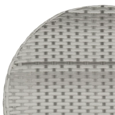 The fun creative design of the grey Valdez Stacking Armchair brings a new level of style to indoor and outdoor guest seating. This sturdy, durable chair with modern round back is sold in sets of two and crafted with easy care, weather resistant PE wicker and aluminum. Care Instructions: Store outdoor furniture indoors or cover well when not in use. Remove wooden furniture from standing water. Dust regularly with small brush or vacuum. Spills should be taken care of immediately before they harden or stain with a slightly dampened sponge. Do not use bleach solutions.